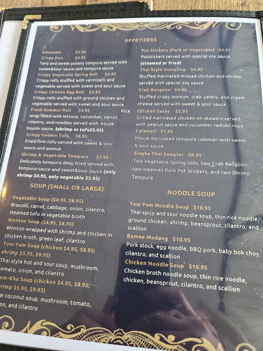 Singha Thai does not shy away from creativity; the Seafood Crazy Noodle brings a delightful medley of seafood to the plate. Customers rave about the ambiance, service, and the inviting atmosphere that enhances every meal. Whether you're a local or just passing through, this hidden gem offers not just satisfying meals but memorable dining experiences that keep patrons returning for more.